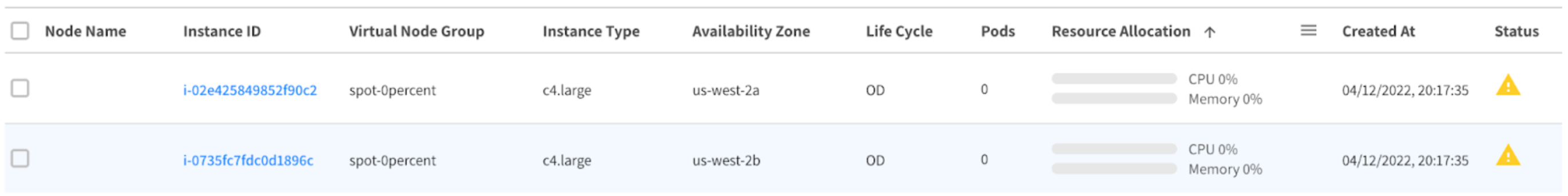 - Go to the Nodes tab in your cluster's page in Ocean.